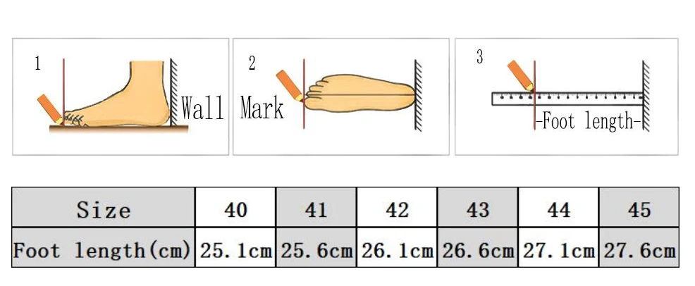 2. Primeiro meça o comprimento do pé e selecione o tamanho de acordo com o comprimento do pé. (Não escolha o tamanho de acordo com o tamanho habitual do seu país. Escolha o tamanho de acordo com o comprimento do pé (do calcanhar aos dedos do pé).